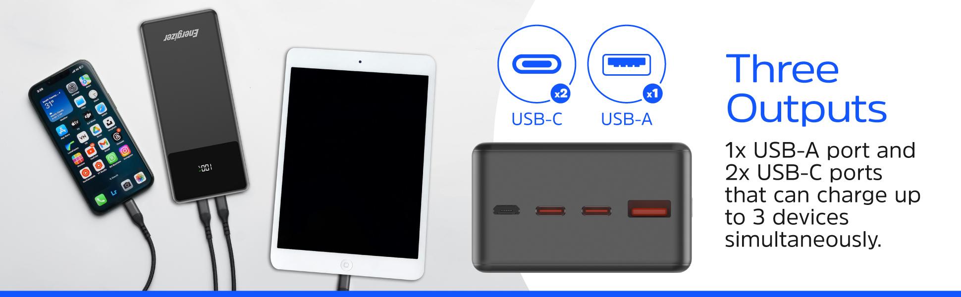 Triple outputs allow you to charge up to 3 devices simultaneously.